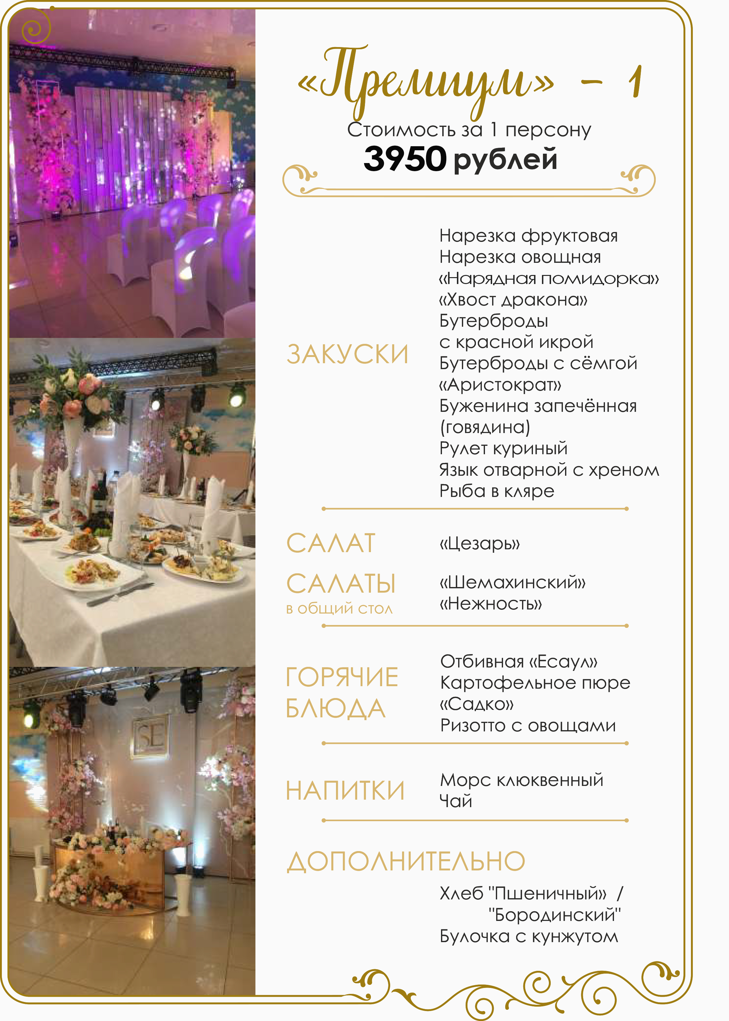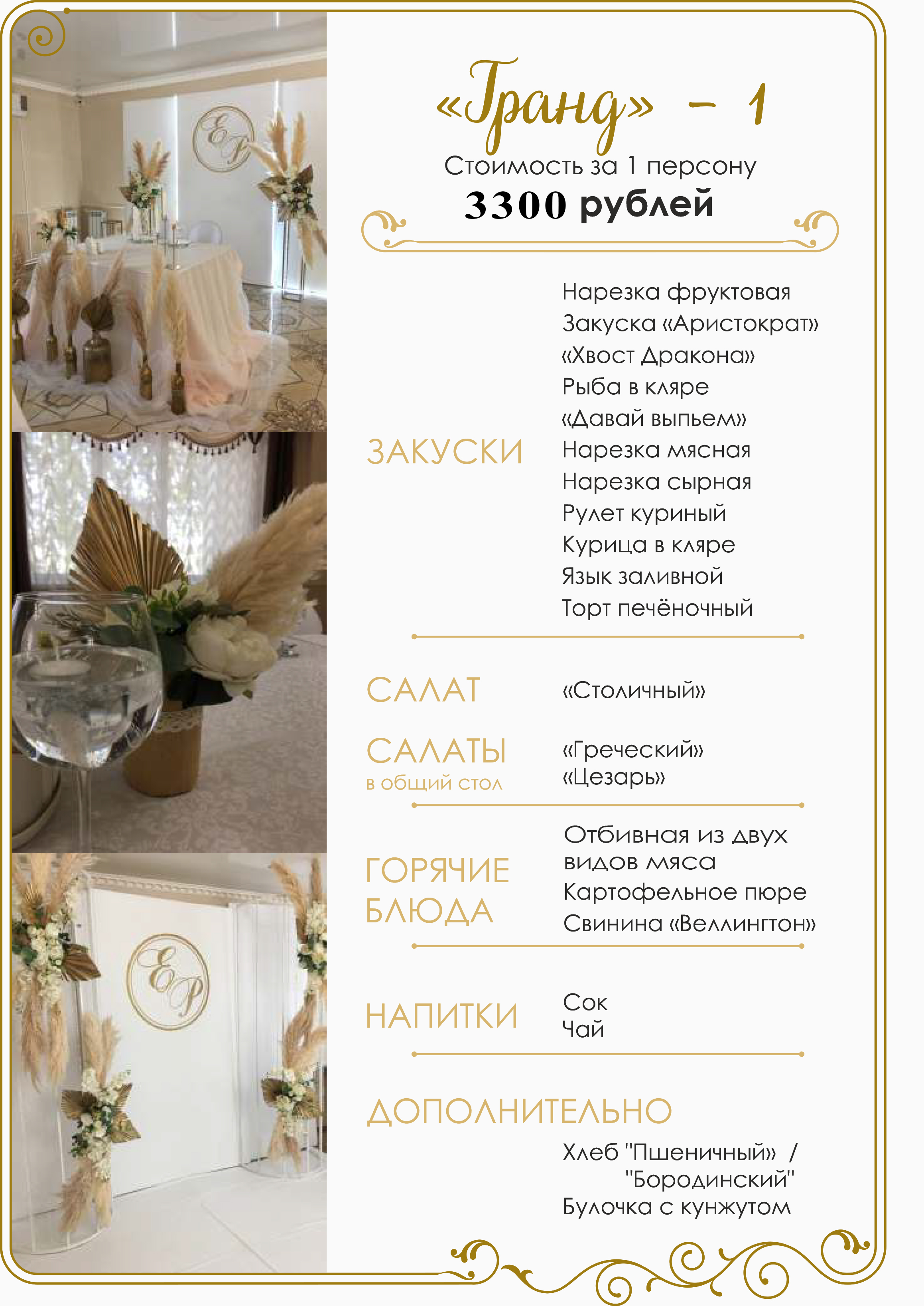 Пакет рассчитан на 1 человека. Вы можете привезти свою алкогольную продукцию и чайный стол